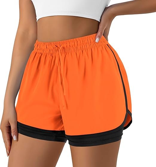 - 2-IN-1 DESIGN: Women’s running shorts are double-layered Design with inner layer provide elastic support and protective coverage can greater freedom of movement.; Outer layer has side slit design provide greater range of movement and breathable function.